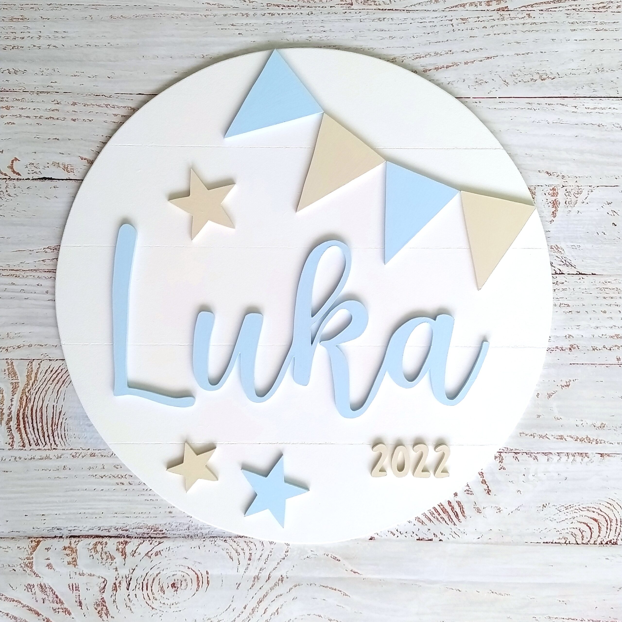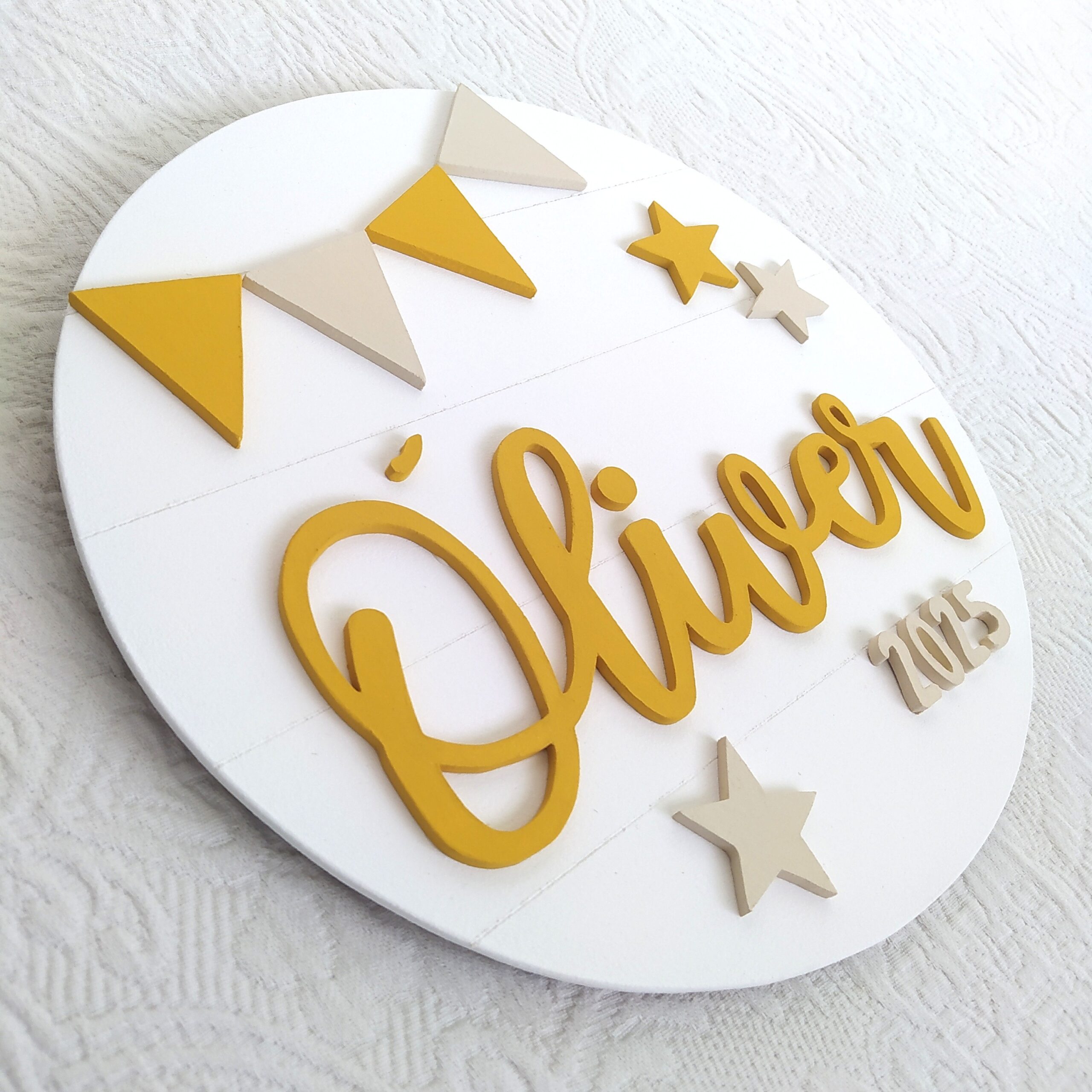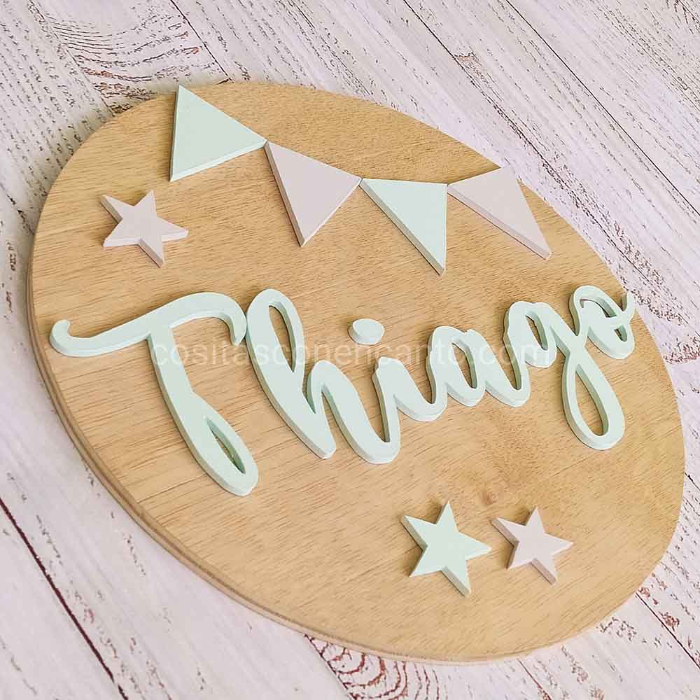 ¡Todos los materiales están incluidos! Al comienzo del taller te daré un círculo de madera o MDF, para barnizar o pintar de blanco, y también banderines, estrellas, retales y el nombre que quieras ya cortado. Pinchando AQUÍ puedes ver algunos ejemplos que tú mism@ podrás realizar,